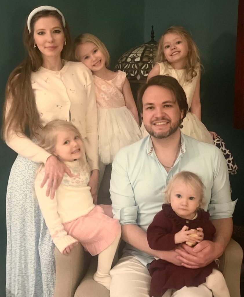 Son mari, Tyler, avait été élevé dans la religion catholique et avait reçu sa première communion, mais il s’en était éloigné. De retour comme candidat, il sera confirmé. Leurs quatre filles seront également reçues dans l’Église catholique.